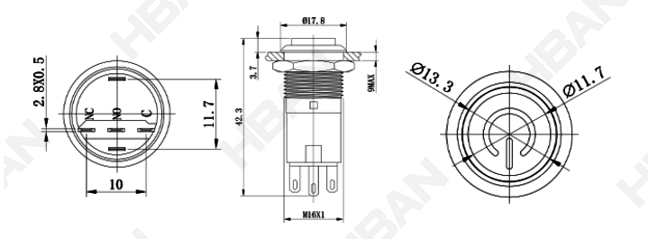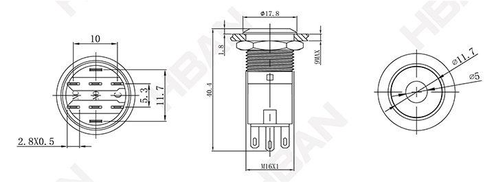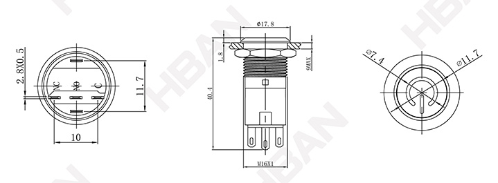● Tamaño del orificio de montaje: 16 mm